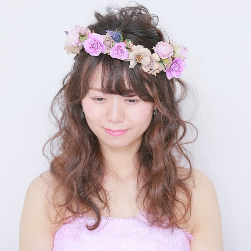 お花いっぱいのラプンツェルヘア ピンク ブラウンのカラードレス Blog ドレス 髪型 ダウン カラードレス 髪型 ダウン ドレス 髪型